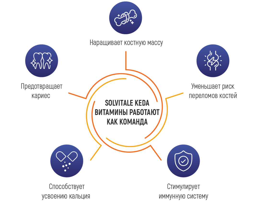 Витамины Solvitalе® KEDA работают как одна команда, чтобы обеспечить наилучшую поддержку для вашего организма.